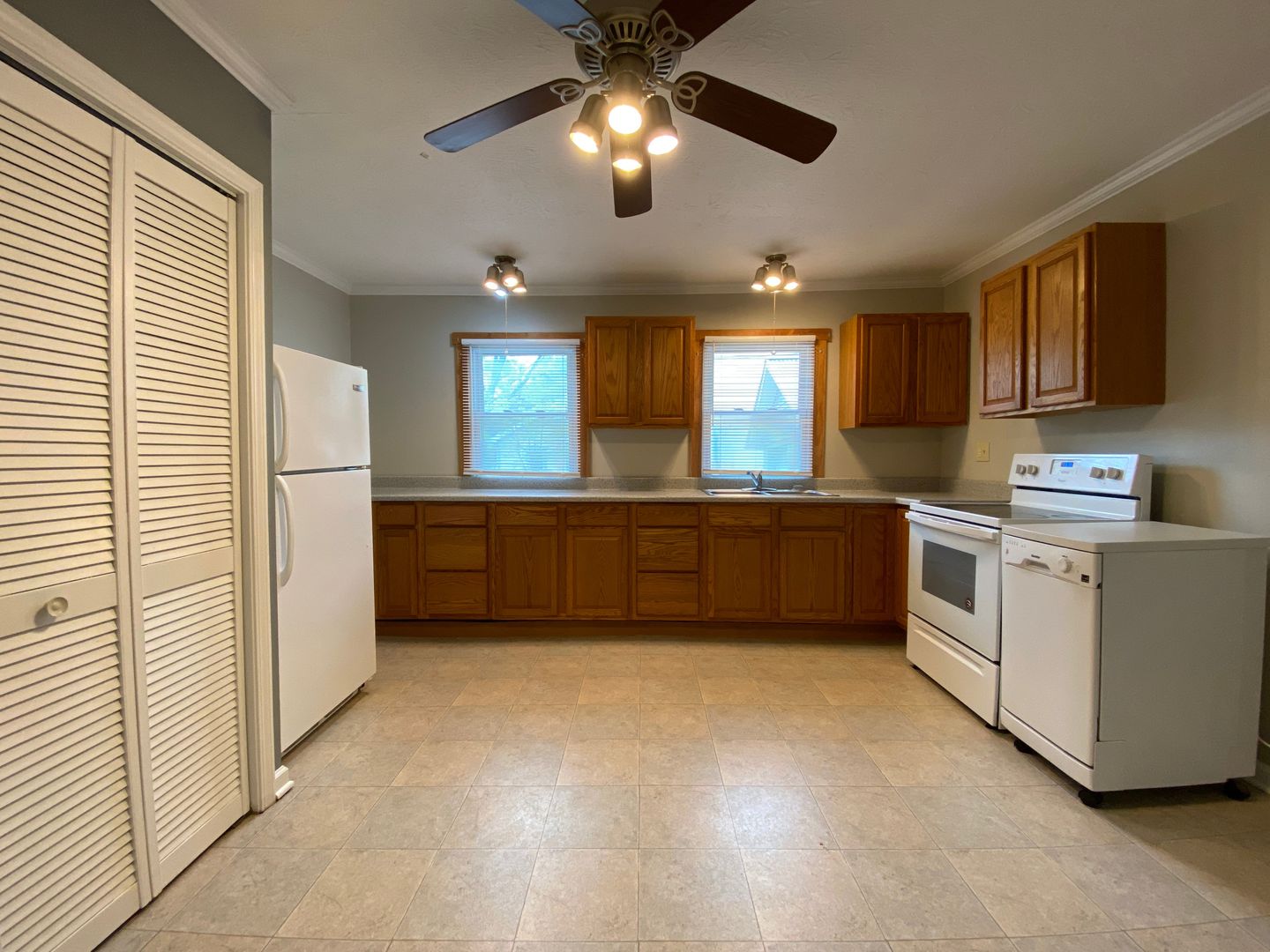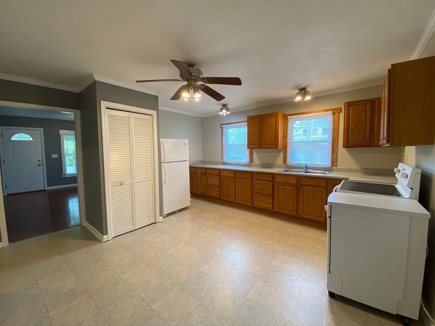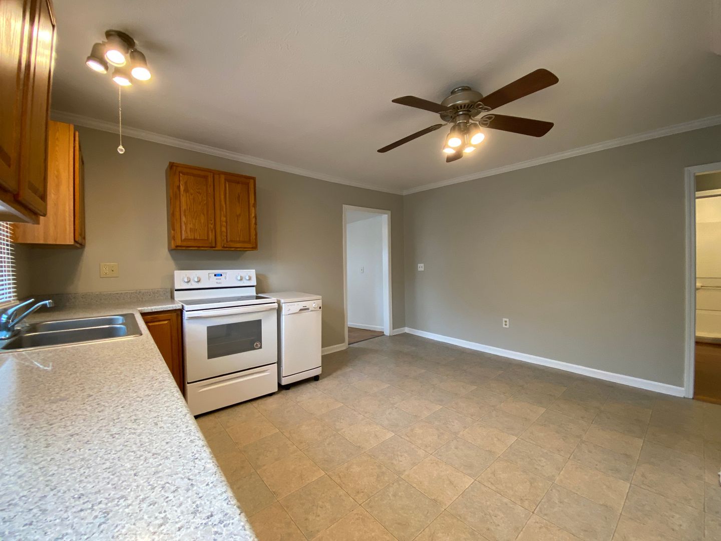 Spacious two bedroom one bath bungalow with detached garage and fenced in yard! Kitchen equipped with a refrigerator, electric range, and dishwasher. Washer/dryer hook-up. Southwest of downtown, near highway, shopping and many other amenities. Lawn care included. Tenant is responsible for all utilities (has both gas and electric).